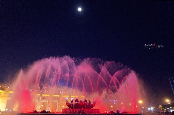 泉城廣場東部的荷花音樂噴泉中間是荷花雕像,繞著荷花的噴泉會變幻不同的造型,噴泉時間:周一-周五10:00、15:00、20:00(冬季19:30);周六、周日及節假日9:30、11:00、15:00、16:30、20:00(冬季19:30),每場噴泉約30分鐘。晚上的噴泉特別好看,燈光不停變幻,適合拍夜景,夏夜又是納涼的好去處。噴泉東部圓弧形的文化長廊可以登頂,有很好的視野,能拍攝噴泉和泉城廣場的全景。