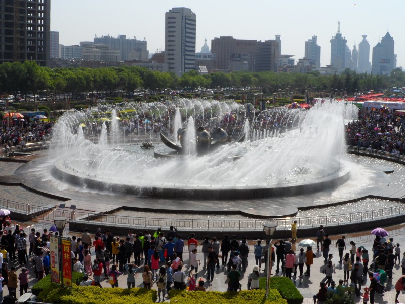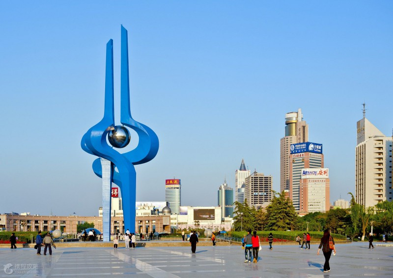 泉城是濟南的別名,整個廣場的設計緊扣“泉”這一主題,南北兩側是狹長的綠化帶,正中央坐落著泉標,藍色高聳的鋼制雕塑和中間的鐵珠構成了篆書“泉”字的造型,你可以和地標合影留念。東端的山東省科技館適合帶小孩的游客一游,孩子在里面能學到很多科普知識。廣場上常能看見在此休閑娛樂的當地市民,喂鴿子、放風箏、溜旱冰,到了傍晚市民更多,愈發熱鬧。