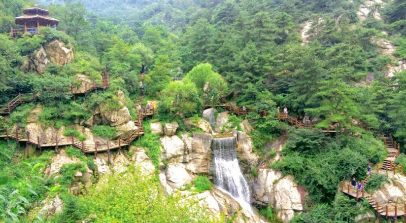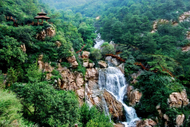九如山瀑布群風景區坐落于濟南市區東南約五十公里處的西營鎮,這里森林密布、瀑布成群,清涼的環境和清新的空氣使這里成為夏季避暑的好去處。景區內有曲折蜿蜒的木棧道直通山頂,漫步在密林中,聽著身邊溪流潺潺之聲、欣賞錯落有致的瀑布群,無比愜意。
