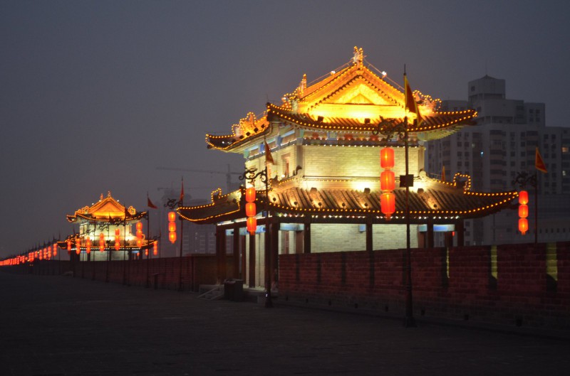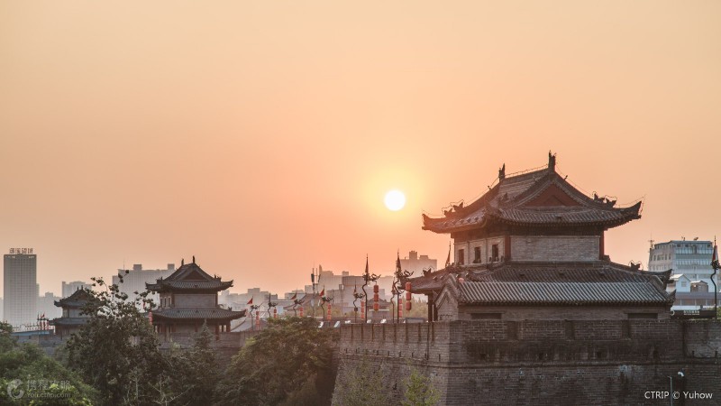 西安城墻,是古都西安的標志性景觀。現存的城墻建于明朝初年,是中國現存完整的古城墻。城墻總周長約14公里,是在唐代皇城的基礎上建成的,包括護城河、角樓等一系列設施。