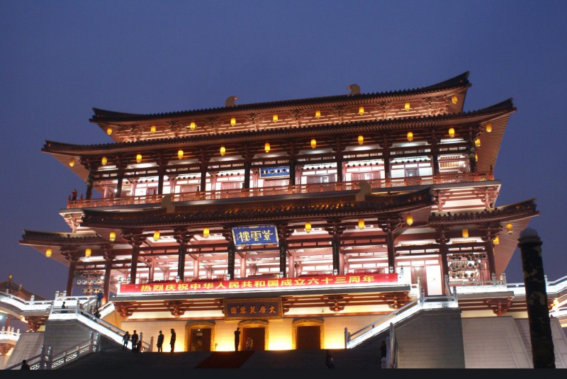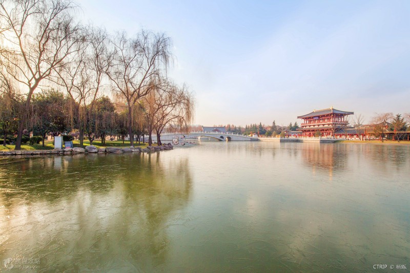 位于大雁塔東南側(cè)的大唐芙蓉園,建于原唐代皇家芙蓉園遺址上。如今這里擁有國(guó)內(nèi)大的仿唐建筑群,來到這里,觀賞恢弘的仿唐建筑,欣賞燈光襯托下的美景,還可以觀看具有盛唐風(fēng)情的歌舞《夢(mèng)回大唐》。