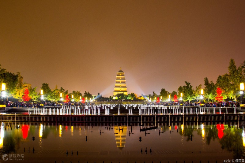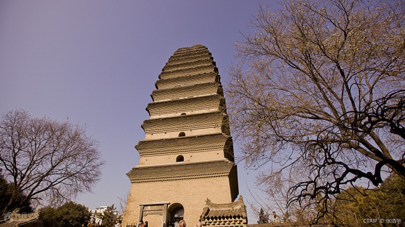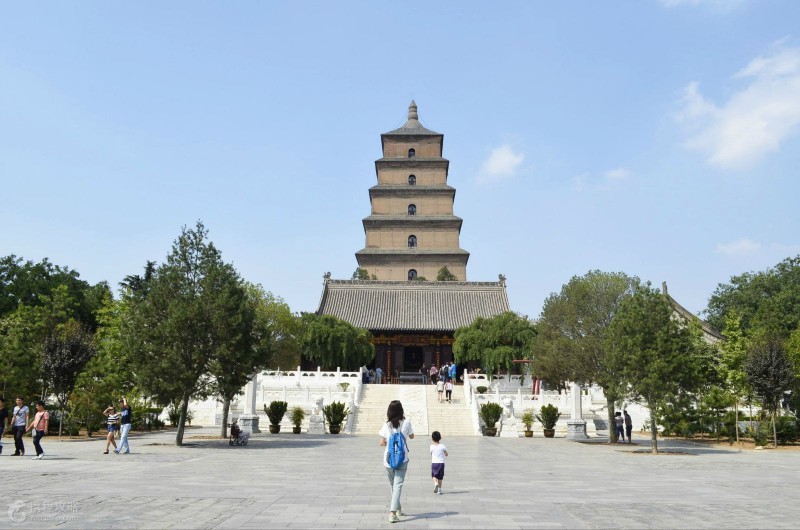大雁塔,位于市區南部大慈恩寺內。大慈恩寺是唐代長安城內宏麗的皇家寺院,建于唐太宗時期,是太子李治為了追念母親文德皇后而建,并由西行取經歸來的玄奘法師擔任“首任主持”。期間,法師督造了大雁塔。