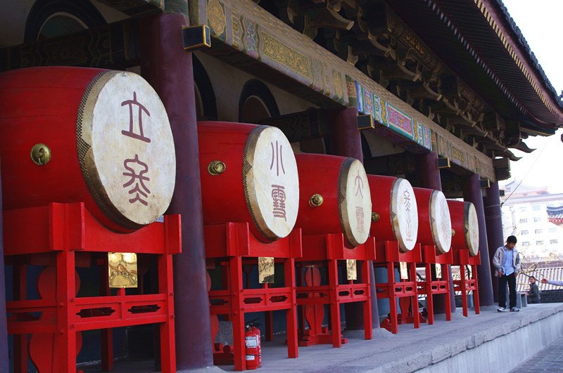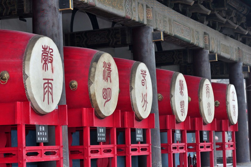 西安鼓樓與鐘樓相望,是古城的標志性建筑之一。鼓樓始建于明洪武十三年(1380年),登上鼓樓,能夠看到一面高1.8米的大鼓,還有24面刻著24節氣的紅鼓,非常有氣勢。此鼓樓內還展覽著明清家具、瓷器和齊白石的書畫。