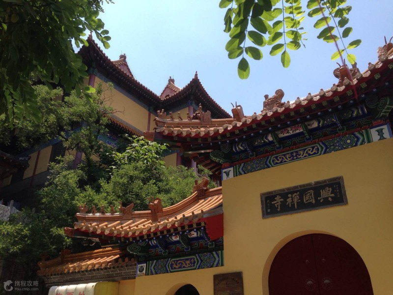 山上的興國禪寺自古是山東省內的佛教勝地,至今香火旺盛。這座寺廟始建于隋唐時期,幾經戰火而毀后重建。現寺內東側山墻上有趙樸初題的"齊魯青來"石刻大字,中間北墻壁上有董必武游千佛山所題詩句《古寺云千佛》碑刻、以及郭沫若的《俯瞰齊州煙九點》七絕碑刻。